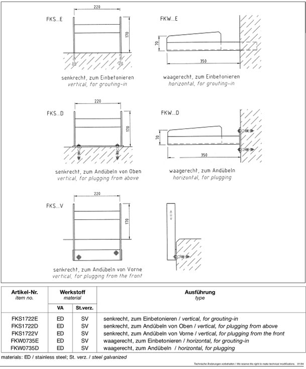Fußkratzer für senkrechten oder waagerechten Einbau, zum Einbetonieren oder Andübeln, gemäß Zeichnungen.